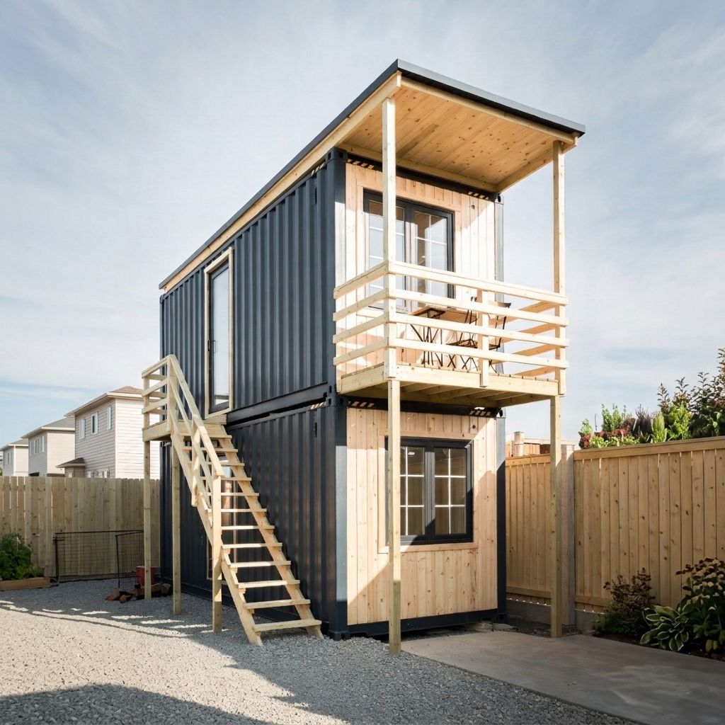 - Półotwarty Plan (Dwupiętrowy Loft): Wykorzystanie dwóch kontenerów stworzyło przestrzeń o wysokości ponad 5 metrów, z antresolą i oszałamiającym widokiem.
